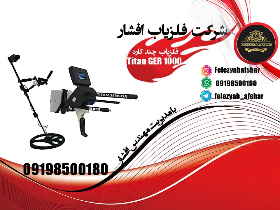 فلزیاب چند کاره Titan GER 1000 یک دستگاه ۵ کاره و مناسب برای گنج یابی، الماس یابی، کاوش انواع فلزات و آب های زیر زمینی است. این دستگاه فلزیاب مولتی فرکانس برای شناسایی دفینه های پنهان در کشورهای باستانی از جمله ایران مورد توجه و استفاده کاوشگران گنج قرار گرفته است. با پنج سیستم جستجوی قابل تنظیم برای جستجوگران فراهم شده است.
